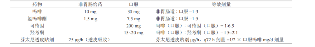 ②将原阿片类药物总剂量转换为口服吗啡等效剂量(见表);