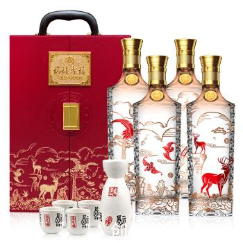 注:52°五粮液股份公司福禄寿禧酒臻选礼盒浓香型白酒婚宴喜酒礼品酒500ml×4瓶价格来源于网络,仅供参考!真实价格请以酒商报价为准。