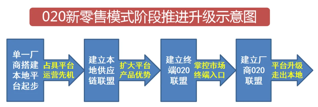 本地门店联盟和供应链落地服务体系建成之后,平台运营模式及流程基本成型并积累了市场地推经验,此时水到渠成可与上游品牌厂家建立O2O新零售联盟,并根据厂家市场战略目标及布局走出本地市场,扩大模式应用区域范围。